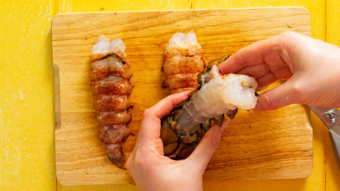 Some people insist on blanching the lobster tails first to make the meat easier to remove. This is not necessary! I am very much team “dirty as few dishes as possible” and had no issues removing the meat raw.